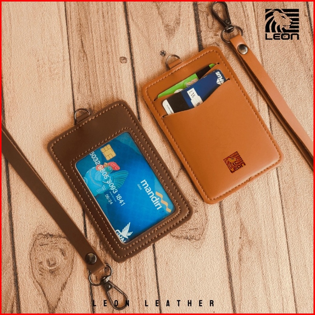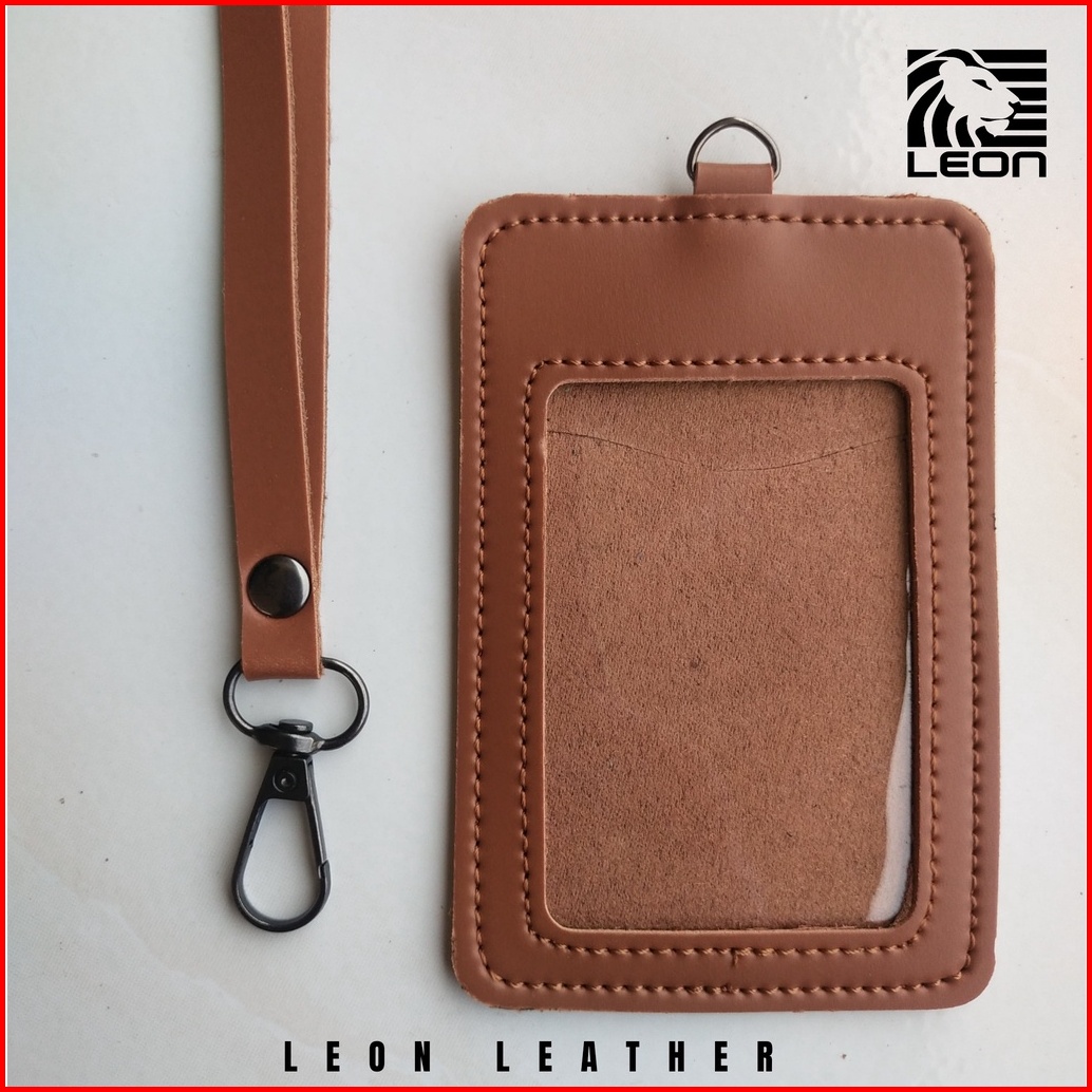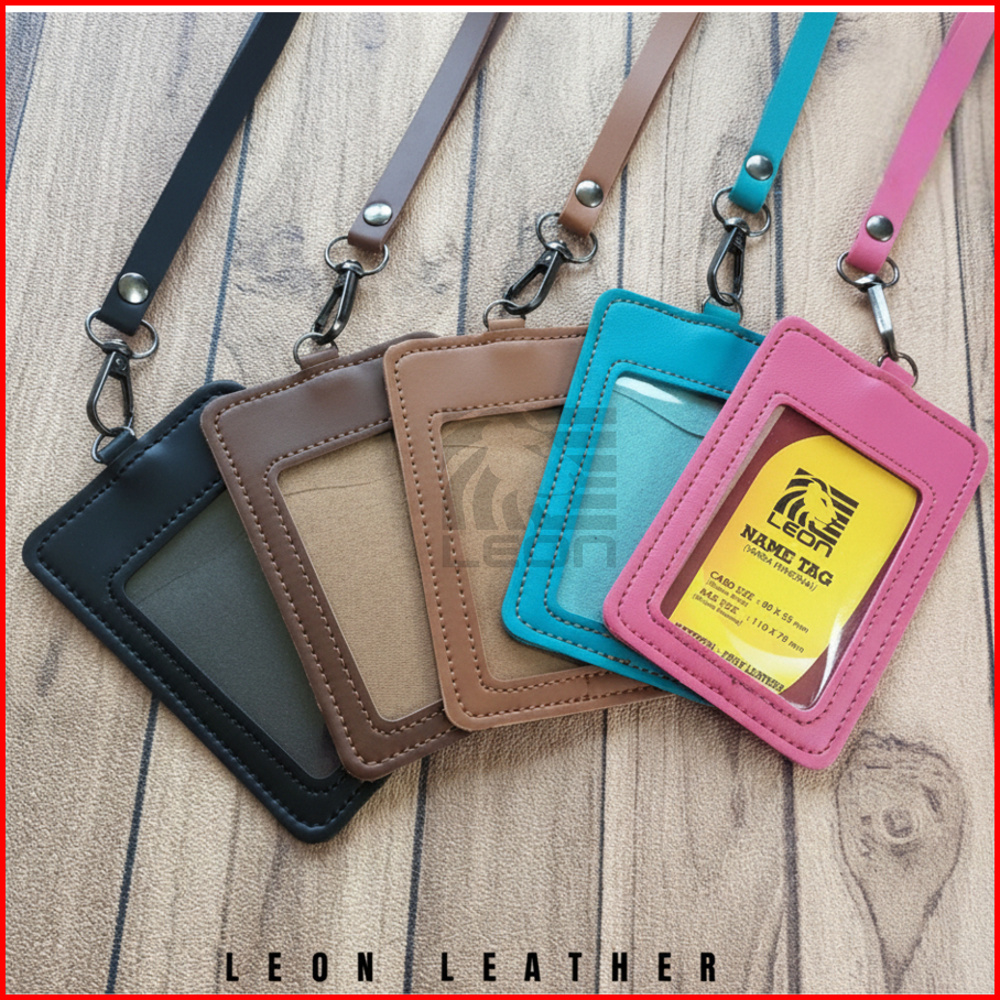 Name Tag Id Card Kulit Holder Lanyard Name Tag Id Card Kulit Muat 2 Slot Kartu Termurah Nts035