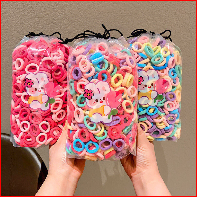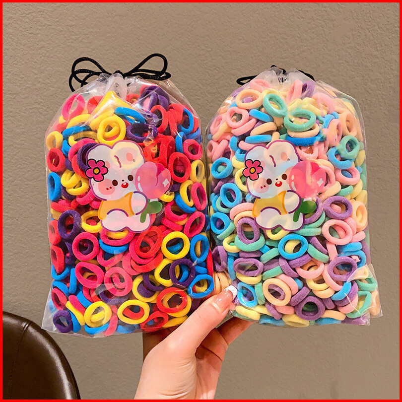 Laapaka Ikat Rambut Isi 200 Pcs Kunciran Rambut Anak Tali Rambut Elastis Model Donat Mini Warna Warni