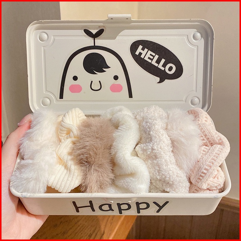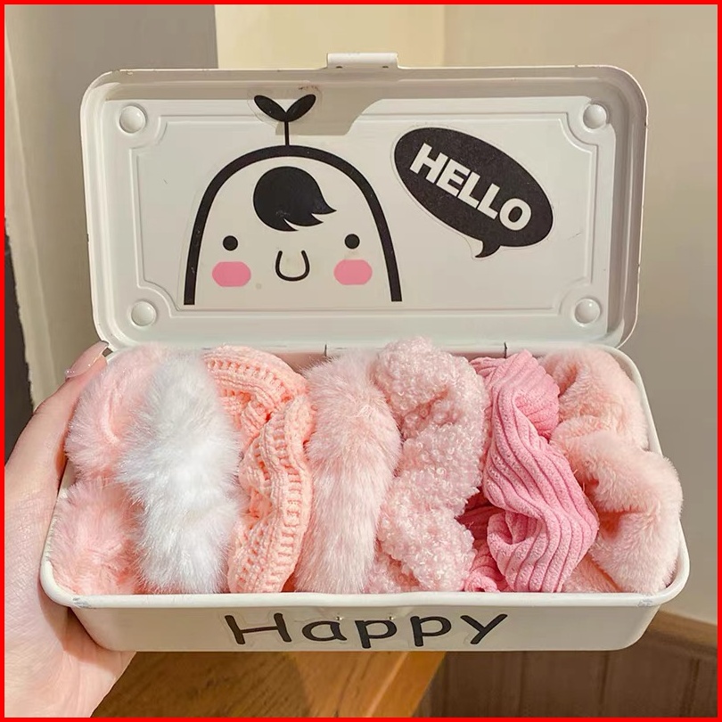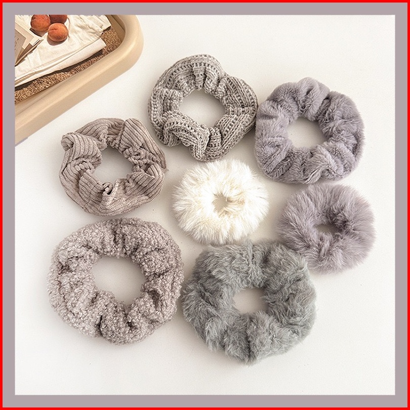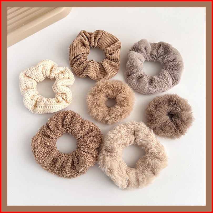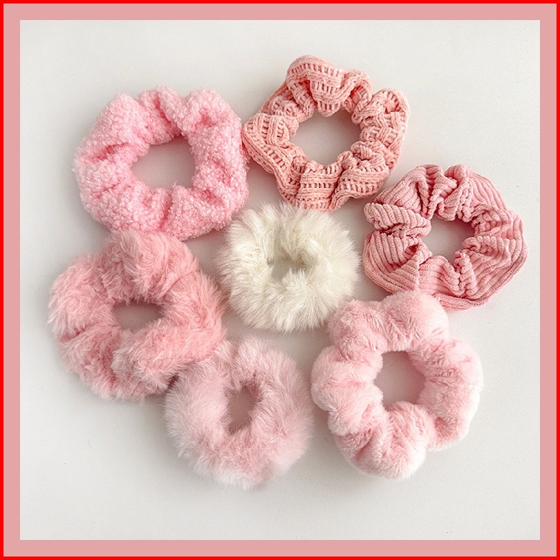 Ed - 7pcs Set Ikat Rambut Scrunchie Cepol Kunciran Rambut Scrunchie Bulu Set