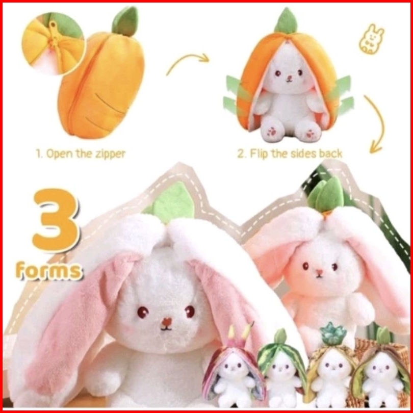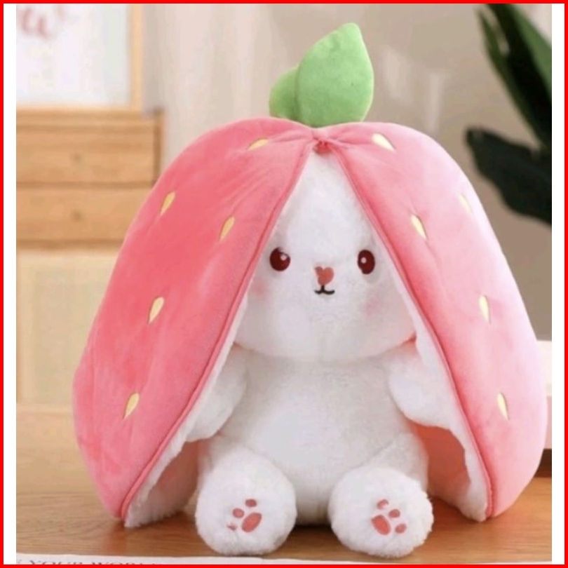 Boneka Kelinci Strawberry Wortel Flip Rever Sible Ukuran 30cm Bahan Halus