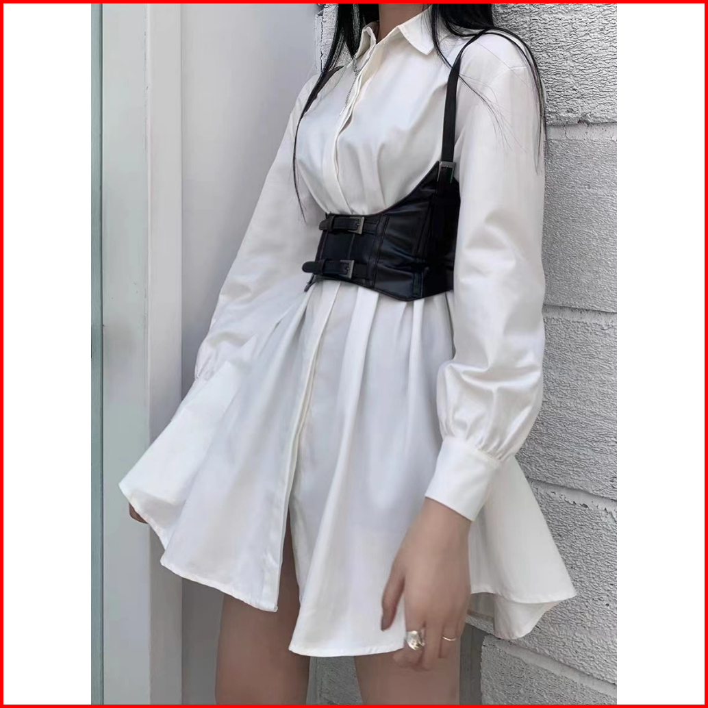 Sabuk Bretel Gaya Punk Baru Sabuk Pu Bahu Ganda Gesper Wanita Kulit Elastis