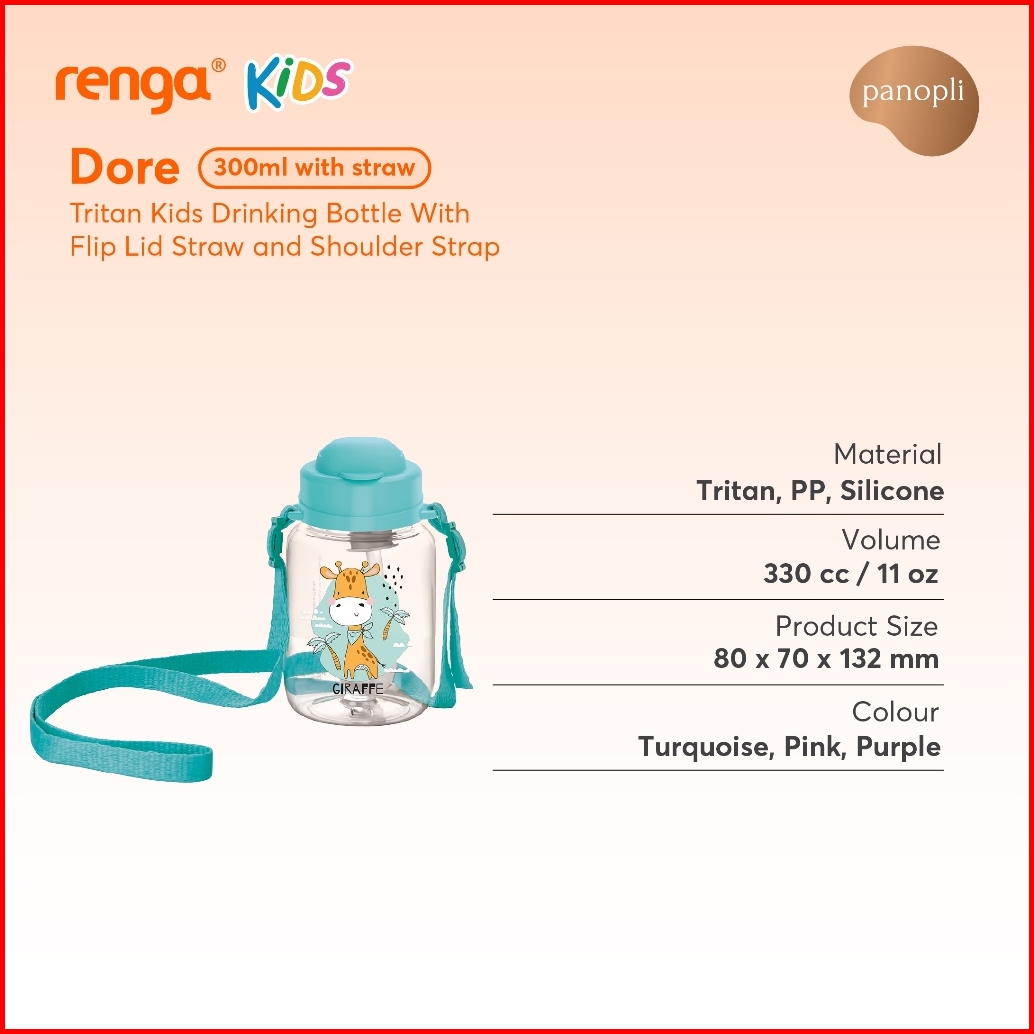 Renga Dore Tritan Kids Drinking Bottle With Straw - Botol Minum Sedotan Anak Tritan Karakter Lucu
