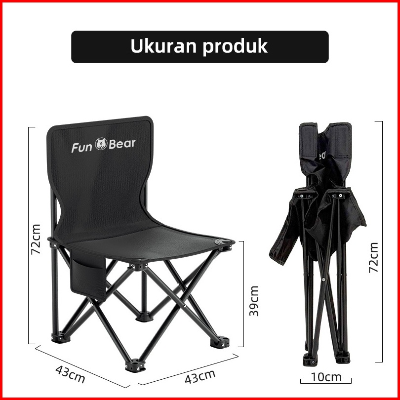 Funbear Kursi Lipat Portabe Loutdoor Folding Chair Camping Mancing Piknik Kursi Bangku Lipat Set