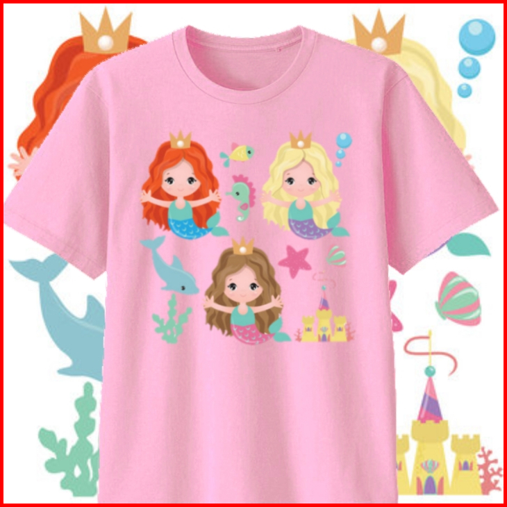 Kaos Little Mermaid Cute Custom Warna Kaos Anak Remaja Dewasa - Cotton Combed 30 S Extra Soft