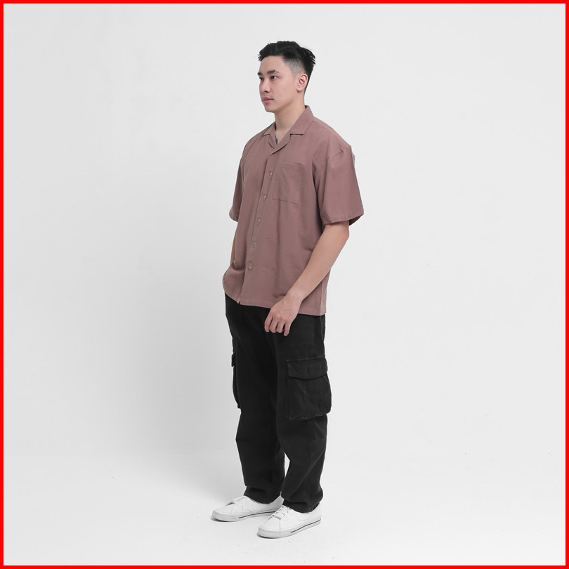 Heyplain Kemeja Oversized Linen Brown - Bowling Oversized Linen Shirt