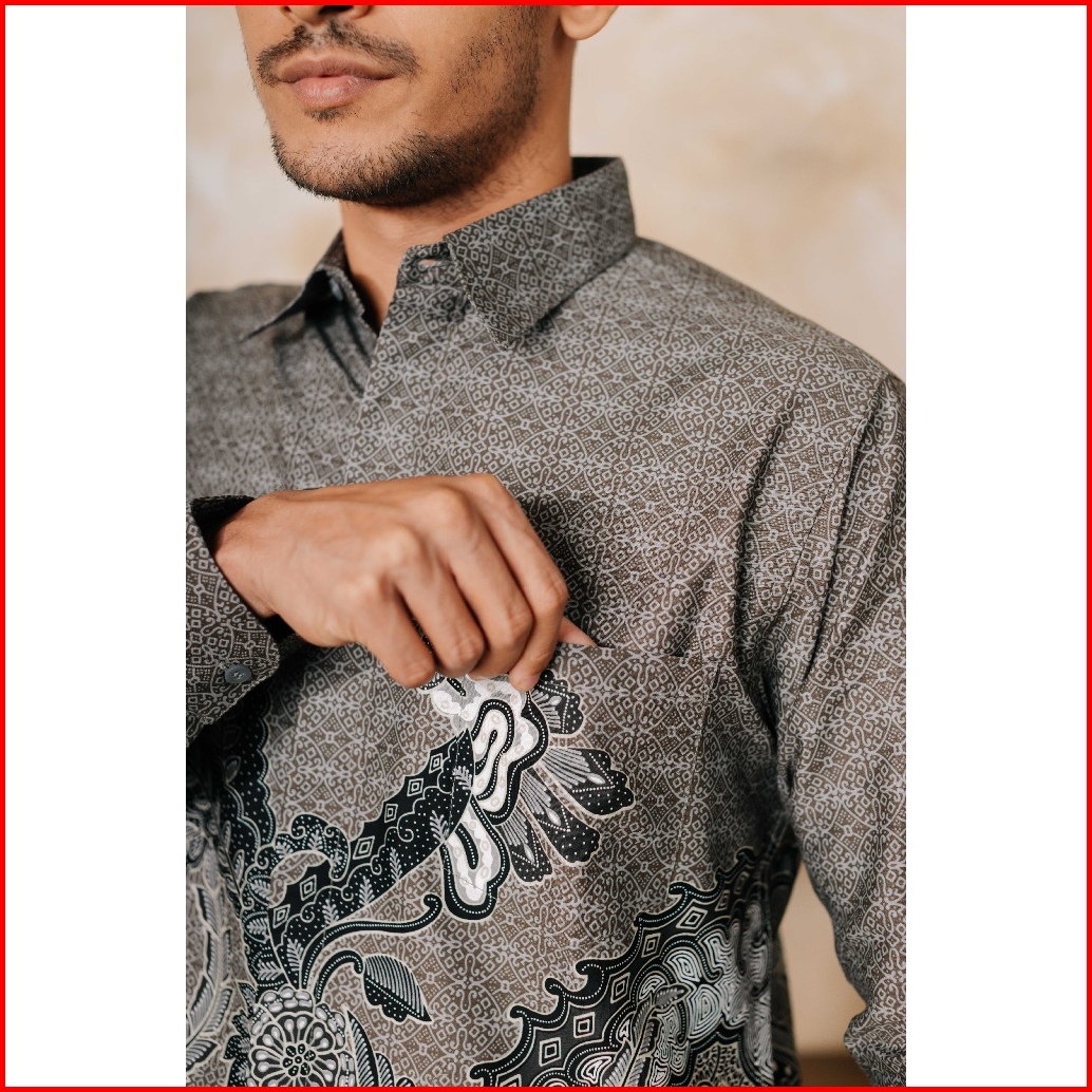 Adyatma Sasmaya Grey Kemeja Batik Pria Slim Fit Katun