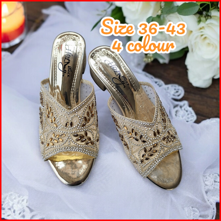 Sandal Pesta Wanita Mewah Hak 4cm Sandal Diamond W1
