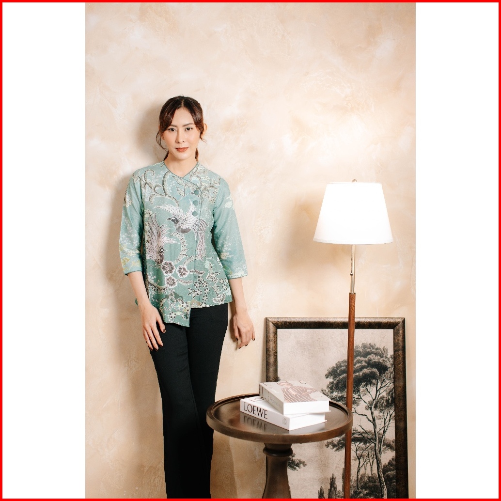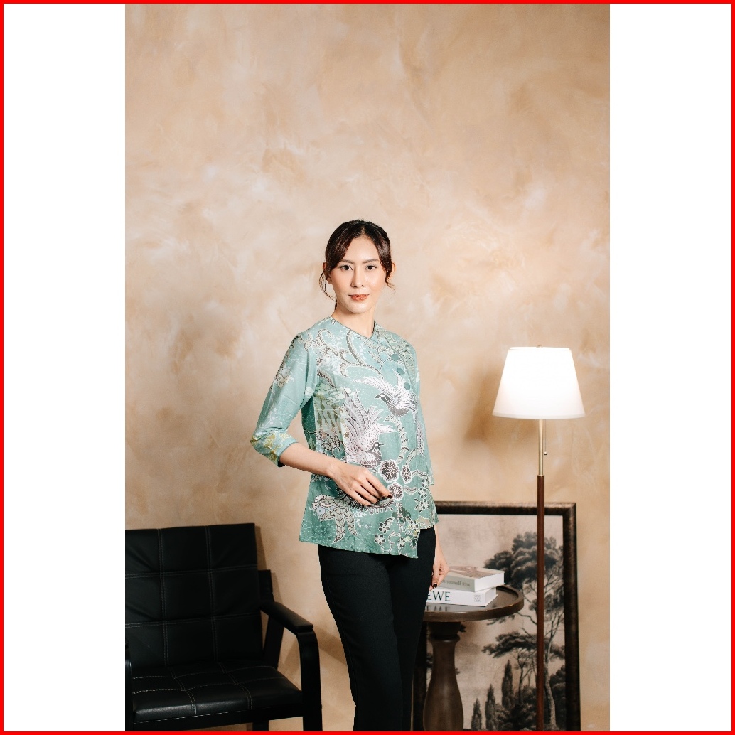 Adyatma Namora Sage Green Blouse Batik Wanita Katun Digital Print
