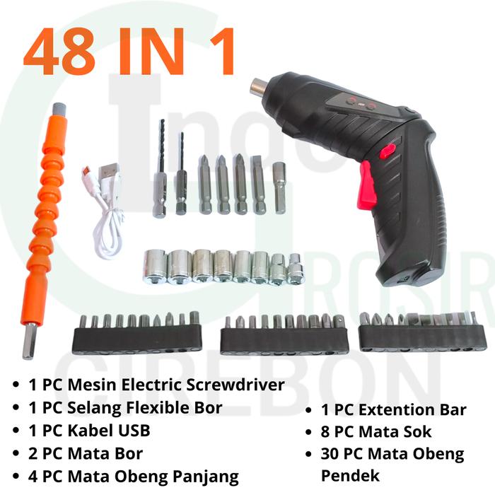 BOR TANGAN SCREWDRIVER 4.8V SET 48PC ART OBENG LISTRIK BOLAK BALIK MULTIFUNGSI ELECTRIC SCREW DRIVER MULTI-FUNCTION SCRE
