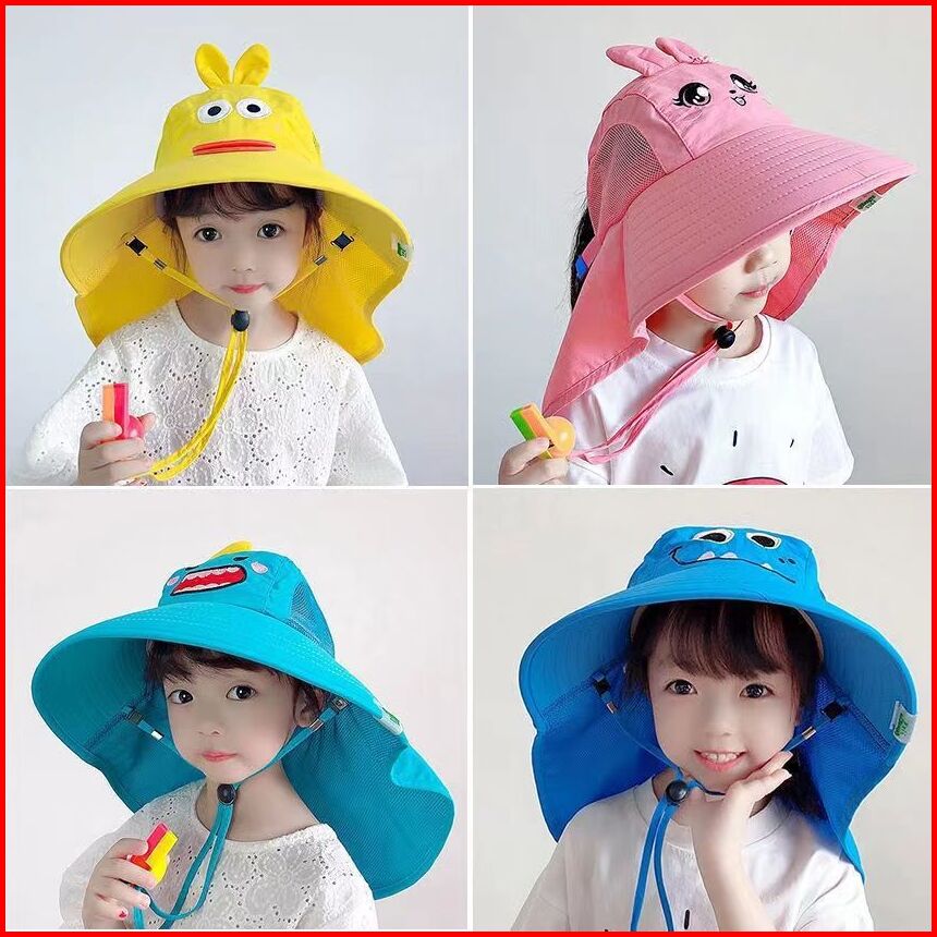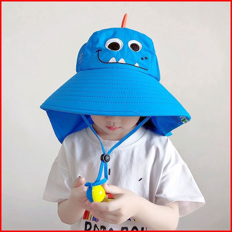 Topi Bucket Anak Visor Lipat Anti Sinar Uv Topi Pantai Tepi Lebar Kartun Anti Matahari Anti Panas Outdoor Hat Model Dino