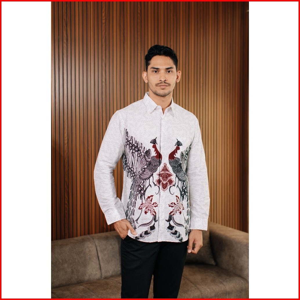 Adyatma Myra White Kemeja Batik Pria Slim Fit Katun Lengan Panjang