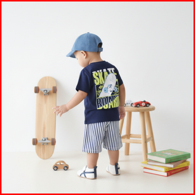 Nuka Baju Setelan Bayi Dan Anak Laki-laki Usia 1-6 Tahun Premium 100 Katun Navy Skateboard