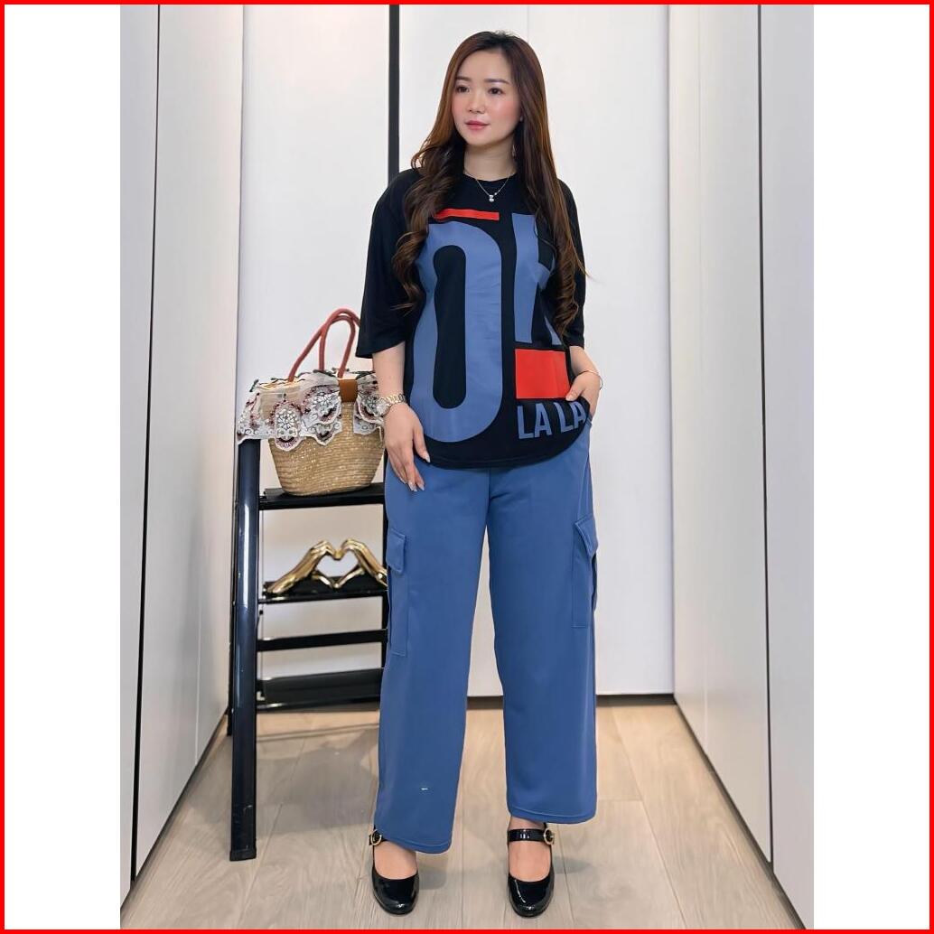 Setelan Cargo Oversize Ld 120 Cm Setelan Wanita Atasan Lengan 3 4 Dan Celana Cargo Setelan Oh Lala Fashion Muslim Sr5370