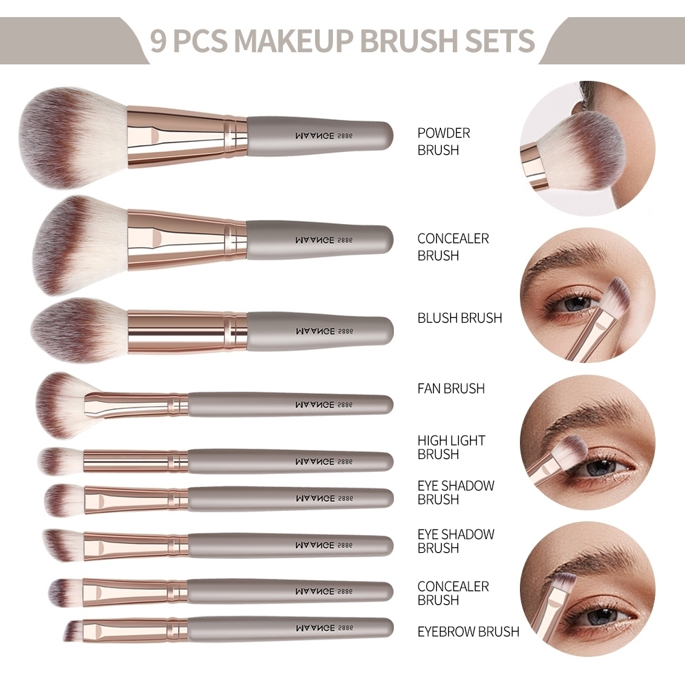 Maange 9Pcs Kuas Makeup Brush+6Pcs Powder Puff Mudah Dibawa Dengan Ember Penyimpanan Tas 5886
