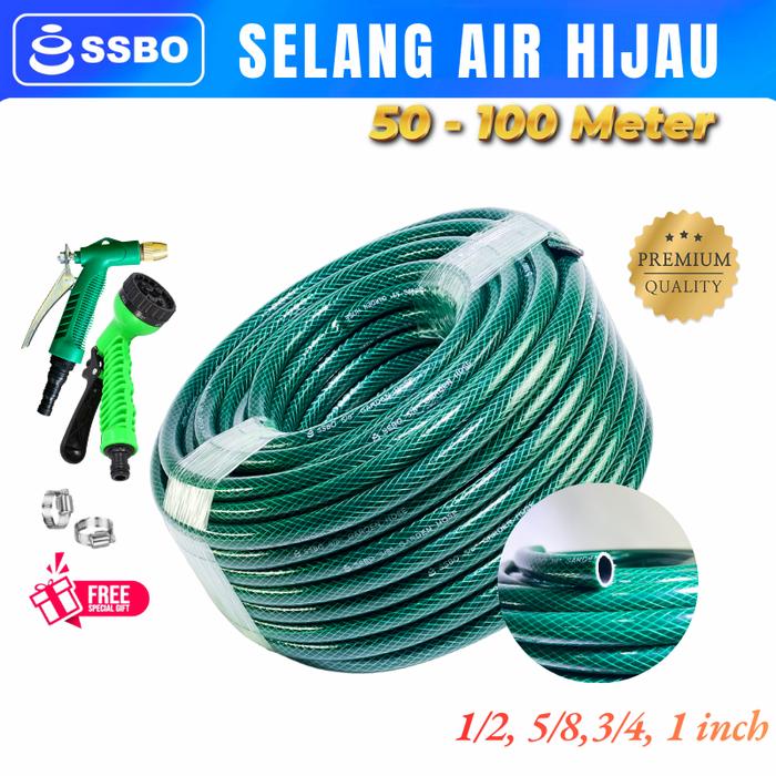 [ GRATIS SEMPROTAN ] SELANG AIR SERAT BENANG HIJAU 3 LAPIS 1/2, 5/8, 3/4, 1 INCH (50M / 100M) – SERAT BENANG, ANTI BOCOR