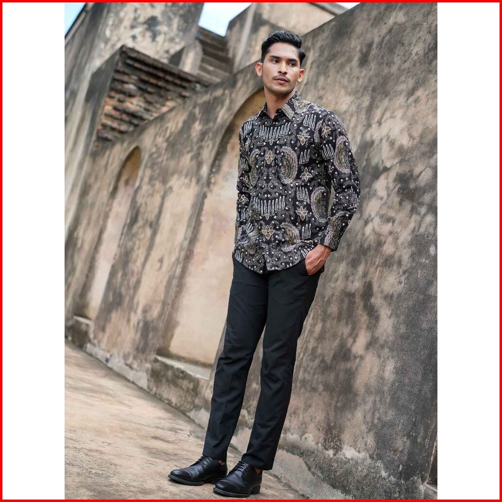 Adyatma Kemeja Batik Slim Fit Prana Black Lengan Panjang Katun