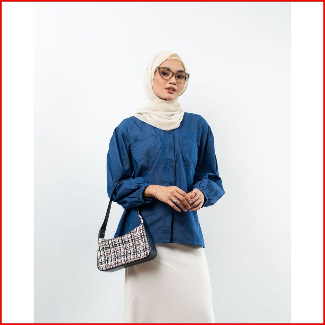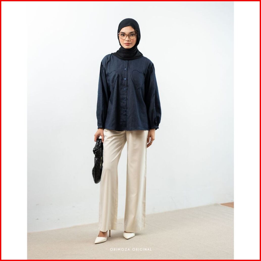 Orimoza Lova Blouse Wanita Lengan Balon Denim Premium