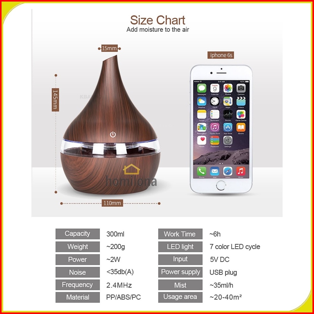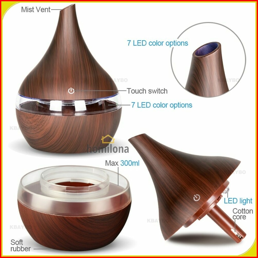 Humidifier Diffuser Aromaterapi Led 7 Color Koleksi Motif Kayu Wood Grain Pelembab Udara Essential Oil Aromatherapy