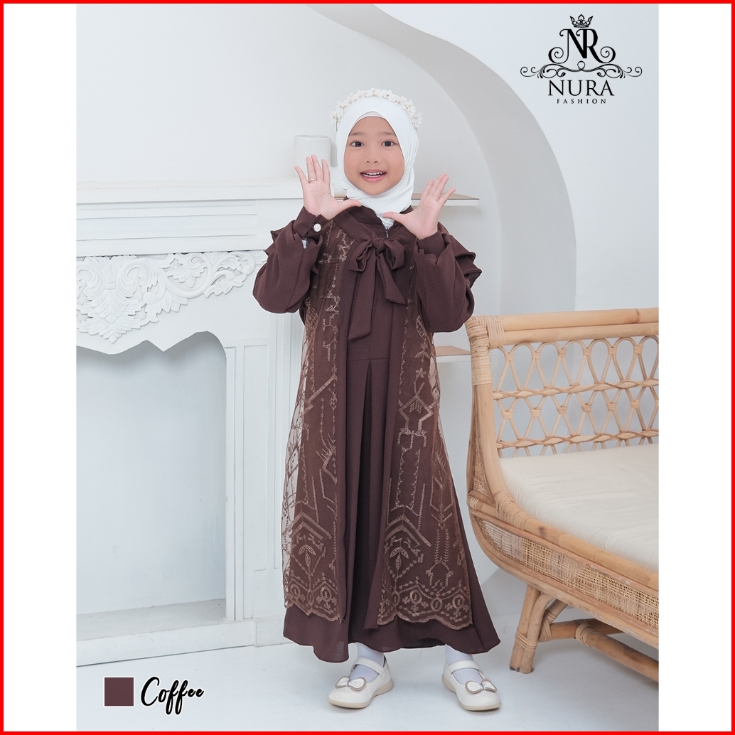 Alinka Gamis Crincle Mix Brukat Premium Dress Anak Perempuan Usia 3-14 Tahun Kekinan
