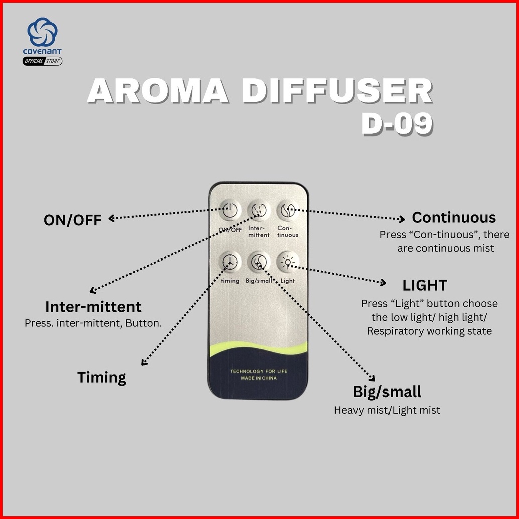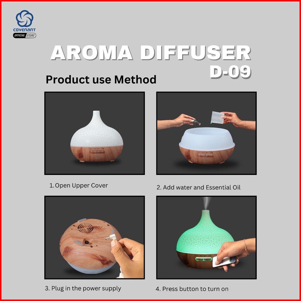 Covenant Humdifier Diffuser 400ml D09 Aroma Theraphy Essensial Oil Remote 7 Led Color