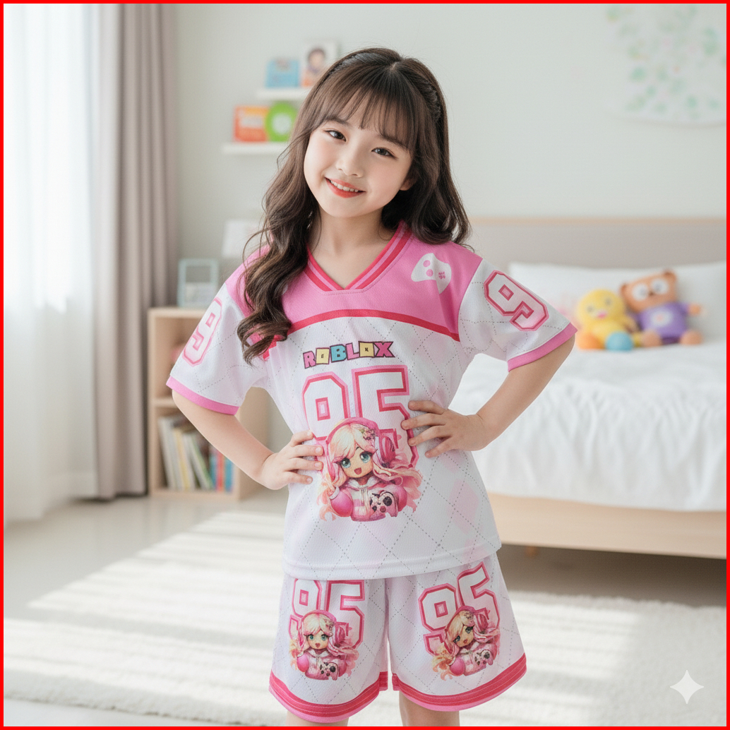 Dealshop Setelan Jersey Anak 2 - 9 Tahun Motif Roblox Kuromi One Piece Bahan Jersey Premium