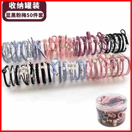 Hello Girl F160 50pcs Box Ikat Rambut Wanita Set Rubber Hair Set Import