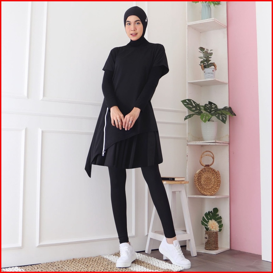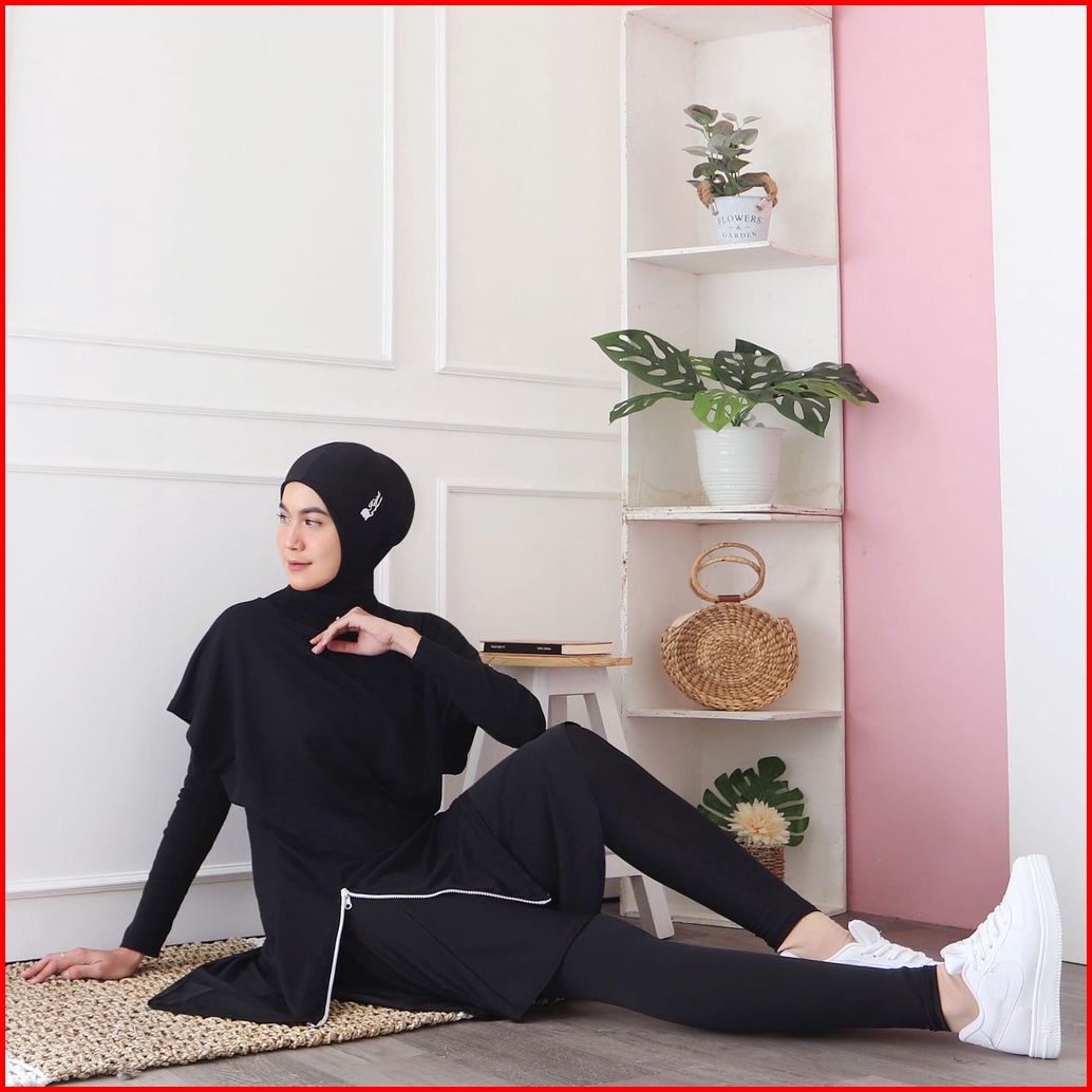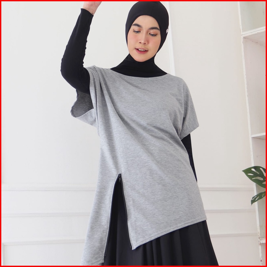 Hitjab - Baju Atasan Olahraga Wanita Sport Tunik Zipper Senam Gym Fitness Padel Training 7276