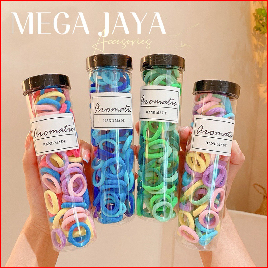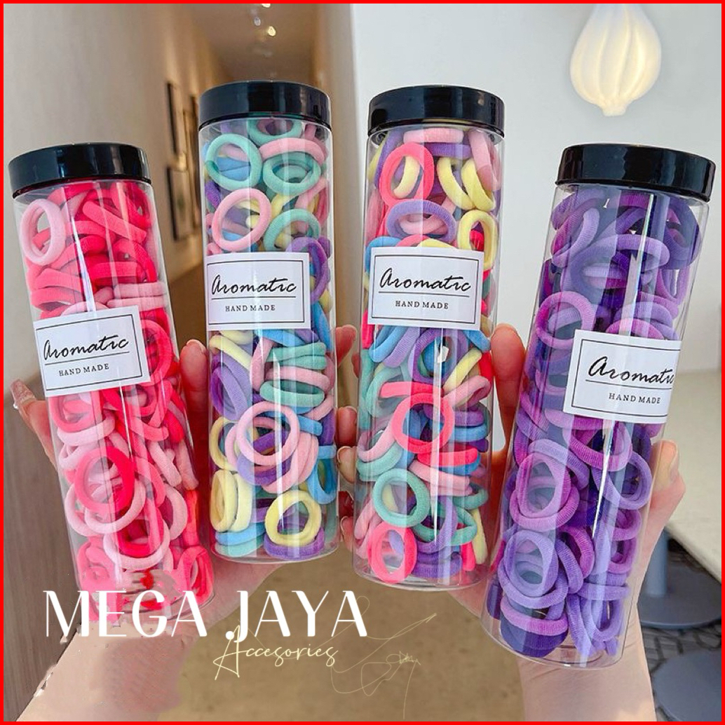 Mj - Ikat Rambut Wanita Anak Set 100pcs Box Tali Ikat Rambut Karet Elastis Polos Warna Warni Import Fashion Korea Wanita