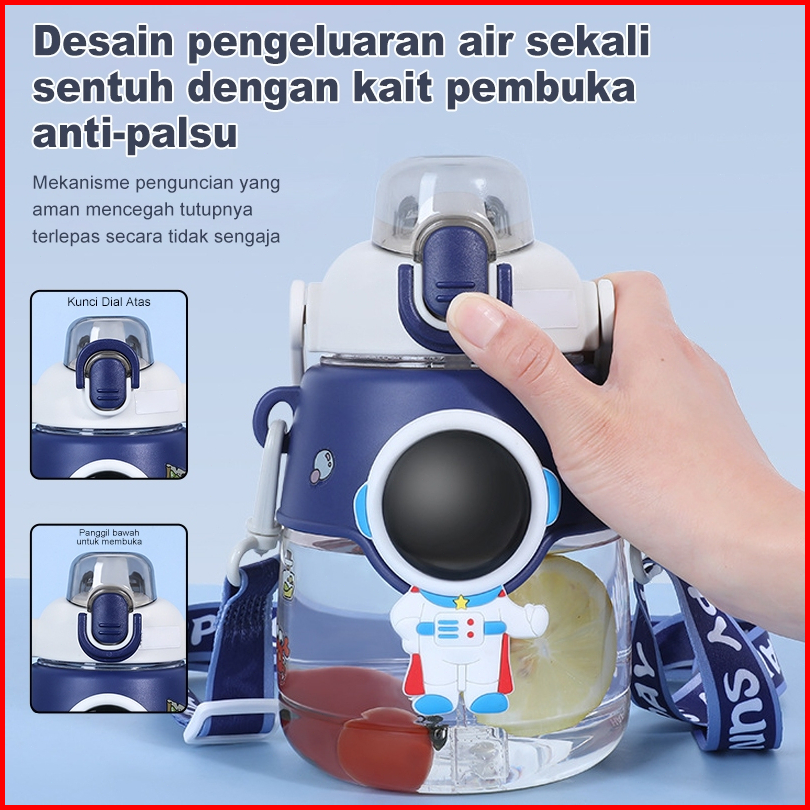 Botol Minum Anak Astronot 1200ml Botol Lucu Anti Bocor Bpa Free Dengan Sedotan Tali Gantung