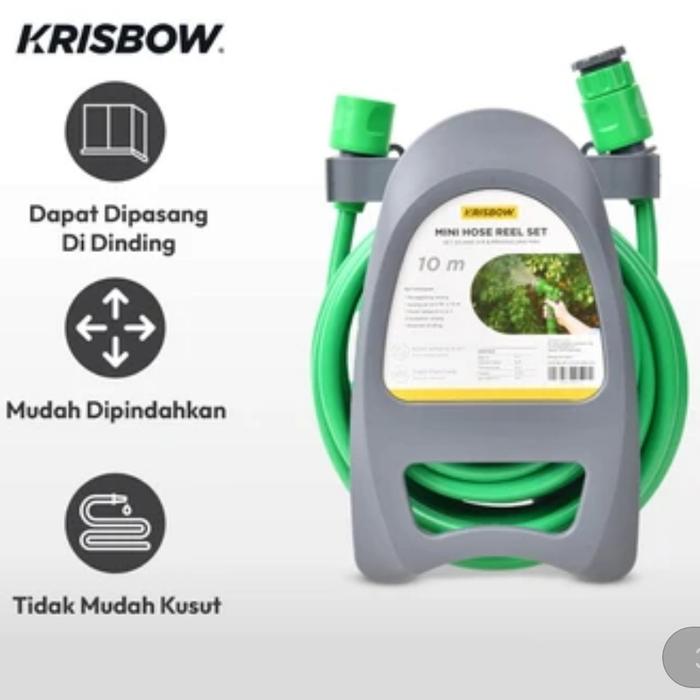 ORI KRISBOW HEAD AND ROLL SELANG AIR TAMAN MOBIL 10 METER - GREEN