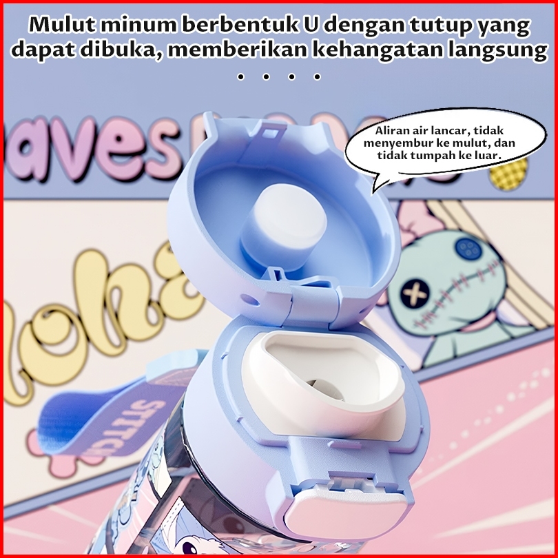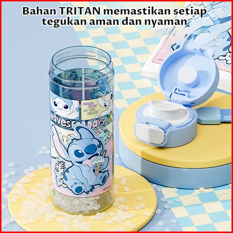 Botol Minum Stitch Mickey 530ml Bahan Tritan Anti Bocor Bpa Free Tumblr Lucu Anak Dewasa