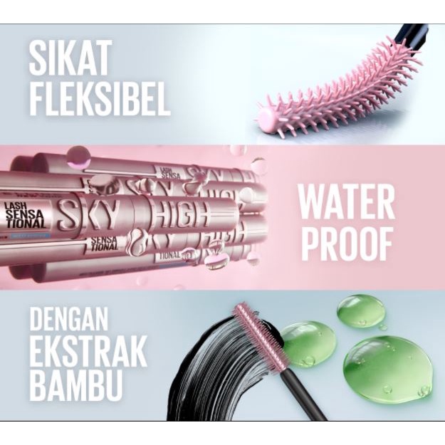 Maybelline Sky High Waterproof Mascara Sky High Booster Serum 6Ml - Maskara Eye Make Up Black Bulu Mata Panjang Tebal Ta