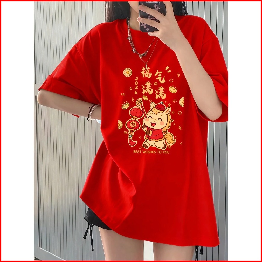 Imlek Tahun Kuda Horse Ma Kaos Katun Combed 30s - Kuda Lampion Best Wishes To You 2026 Bertabur Koin - Chinese New Year