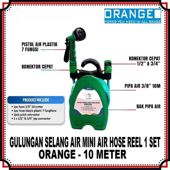 SELANG AIR PORTABLE 10 M SEMPROTAN TAMAN ORANGE HOSE REEL MINI SET 10 METER HIJAU