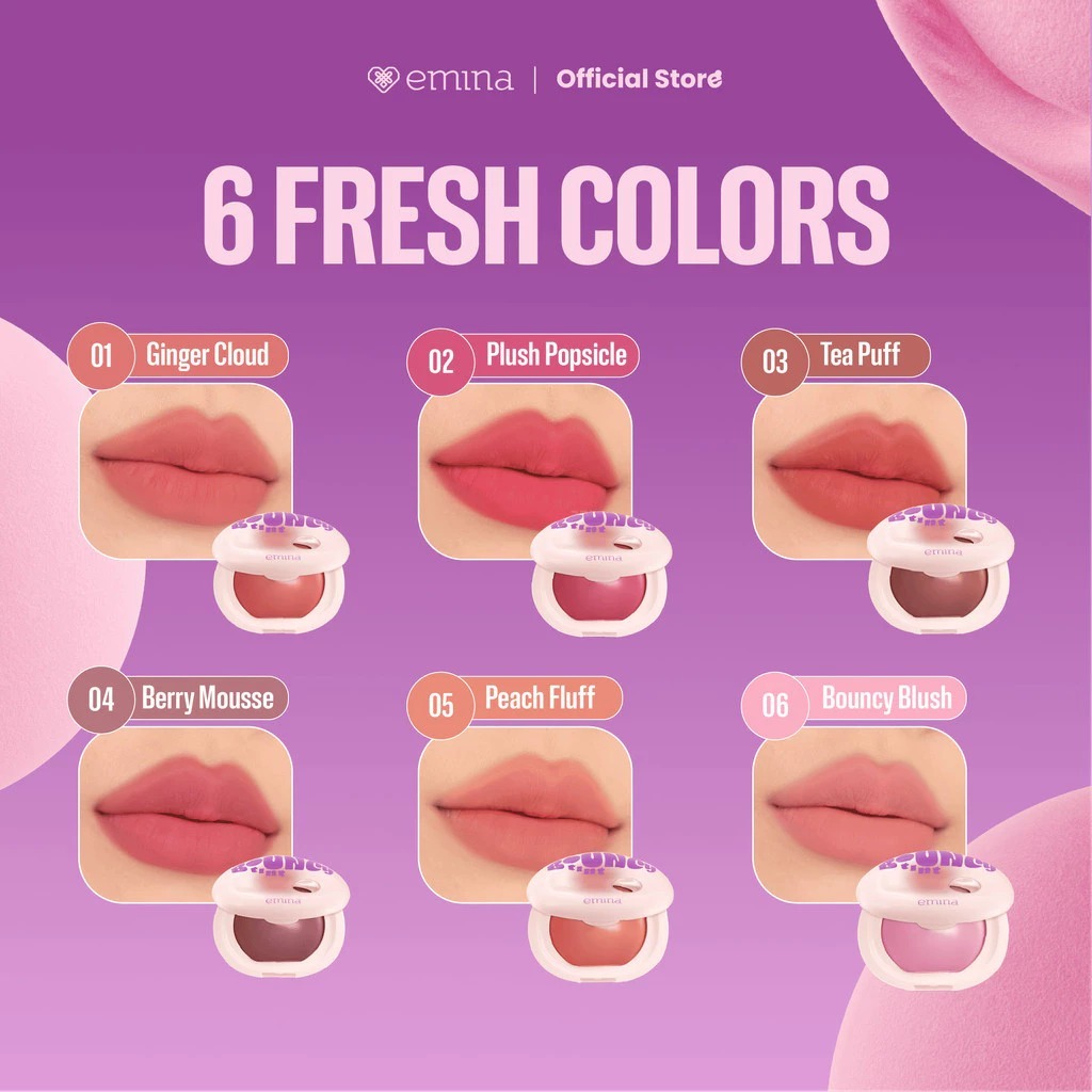 New Emina Bouncy Tint 3 In 1 Lip Cheek & Eye Blurry Lip Color Lasting Stain Dilengkapi Spf 15 Pa+++