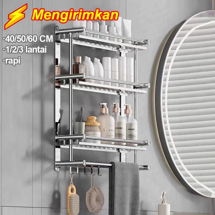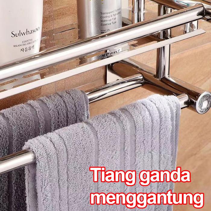 RAK SABUN STAINLESS STEEL RAK TEMPEL GANTUNG RAK HANDUK DAPAT DIPASANG TANPA HARUS DILUBANGIN RAK SHAMPOO KAMAR MANDI -