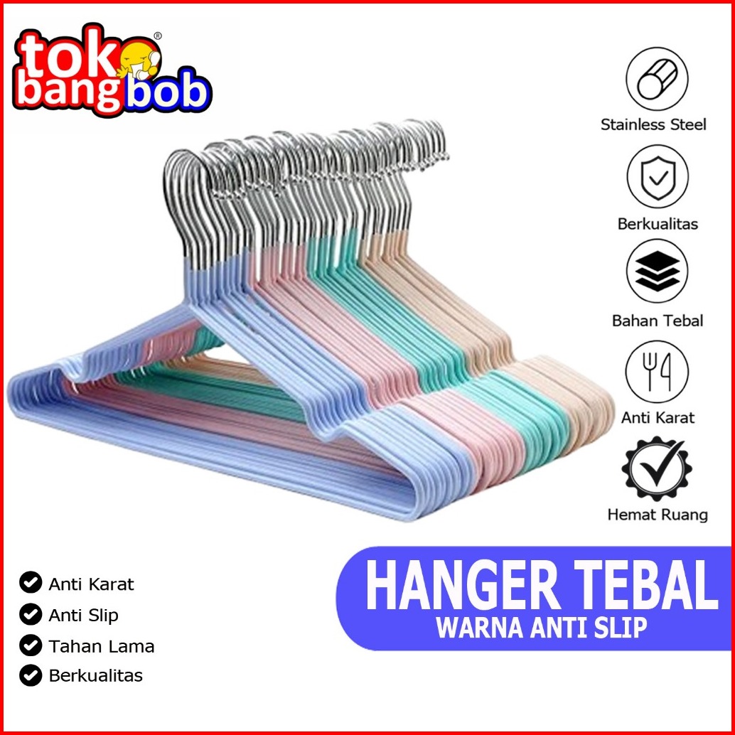 Hanger Anti Slip Tebal Set 10pcs Gantungan Baju Warna Tebal Anti Slip