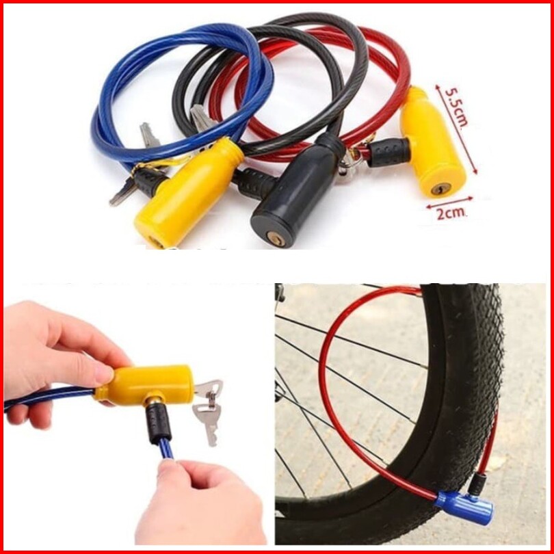 Kunci Gembok Sepeda Motor Cable Lock Plastik Tebal Pengaman Helm Pagar Ban Besi Road Bike Alat Key