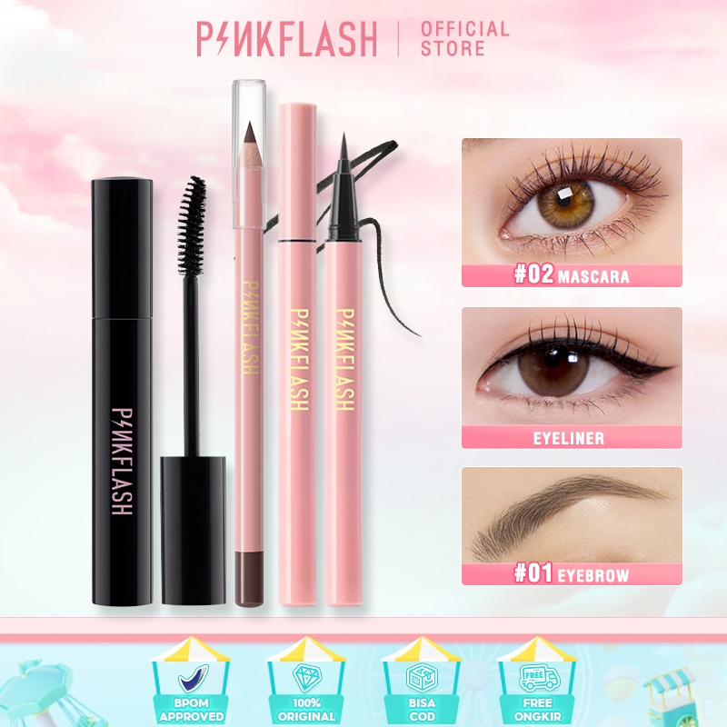 Pinkflash Eyes Makeup Set Eyeliner Eyebrow Pencil Waterproof Maskara Tahan Air