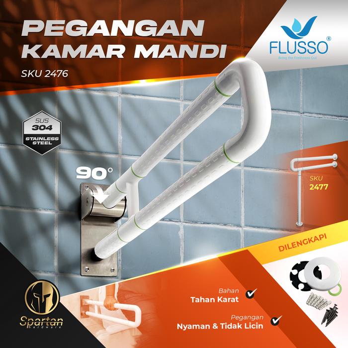 PEGANGAN KLOSET KAMAR MANDI CLOSET BAR DISABILITY SAFETY LIPAT TOILET STAINLESS PUTIH FLUSSO 2476 - LIPAT 2476