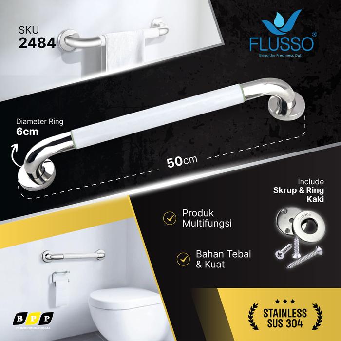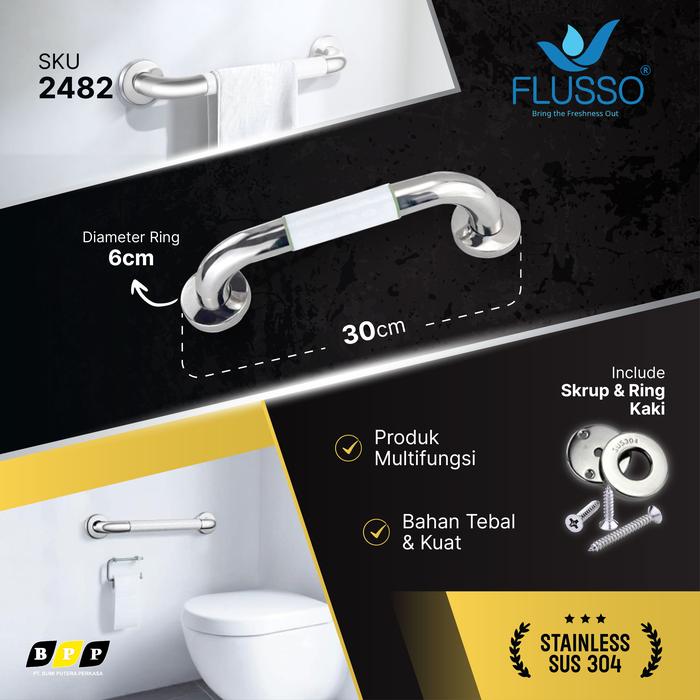 HANDLE PEGANGAN KAMAR MANDI TOILET ANTI SLIP STAINLESS ABS FLUSSO | HANDRAIL PEGANGAN KAMAR MANDI 2482 - 30CM 2482