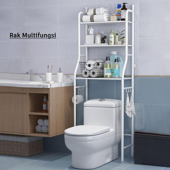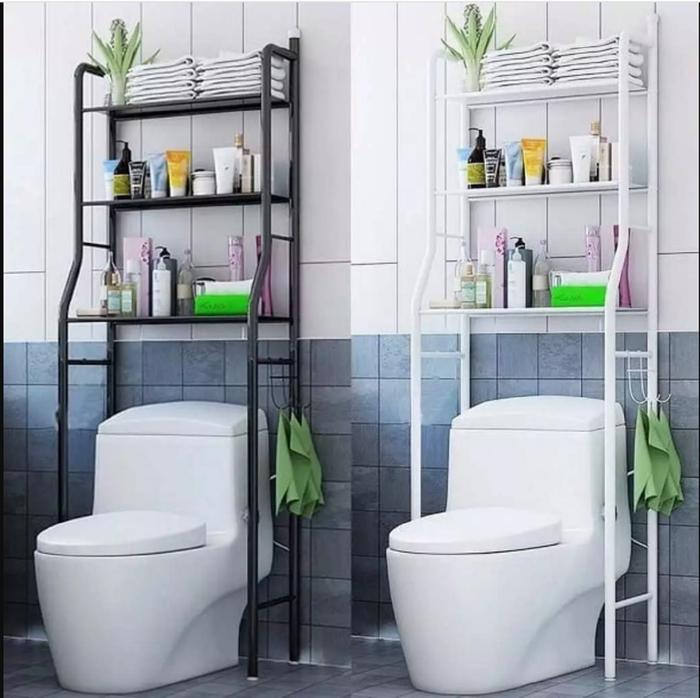 RAK TOILET KLOSET DUDUK ORGANIZER 3 SUSUN BESI ANTI KARAT - BLACK