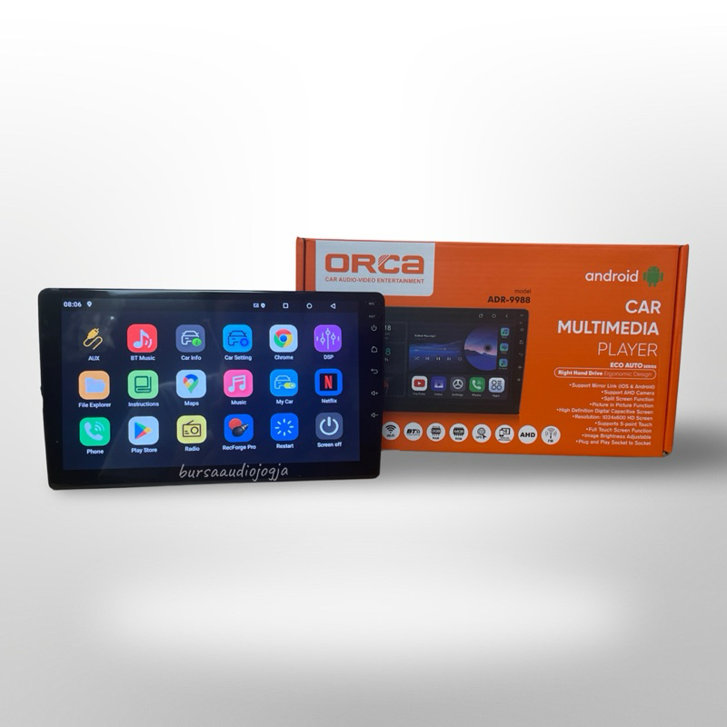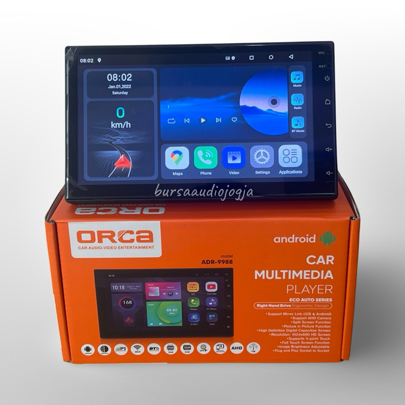 Orca Eco Auto ADR 9988 Headunit android 10 inch CARPLAY ANDROID AUTO IPS RAM 2/64