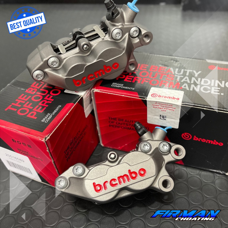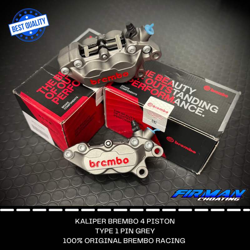 KALIPER BREMBO 4 PISTON 1 PIN GREY KANAN UNIVERSAL ORIGINAL RED LOGO