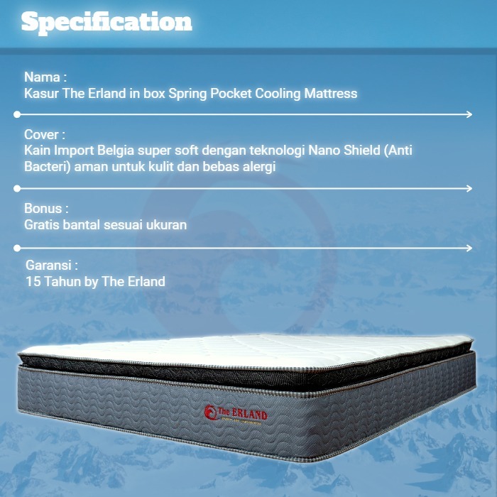 The Erland Kasur In Box Spring bed Cooling Edition Tebal 27 cm Empuk Dingin Anti Pengap Bonus Bantal