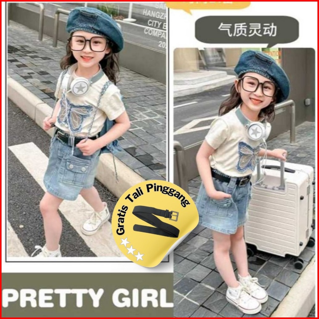 Kidsfo-58 Setelan Set Anak Perempuan Flower Amber Jeans Short Pants