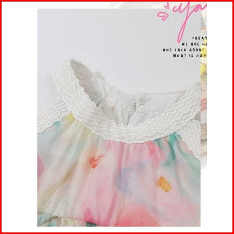 Kidsfo-92 Dress Gaun Anak Perempuan Strip Rok Bunga Ombre Layer Fashion Korea Princess