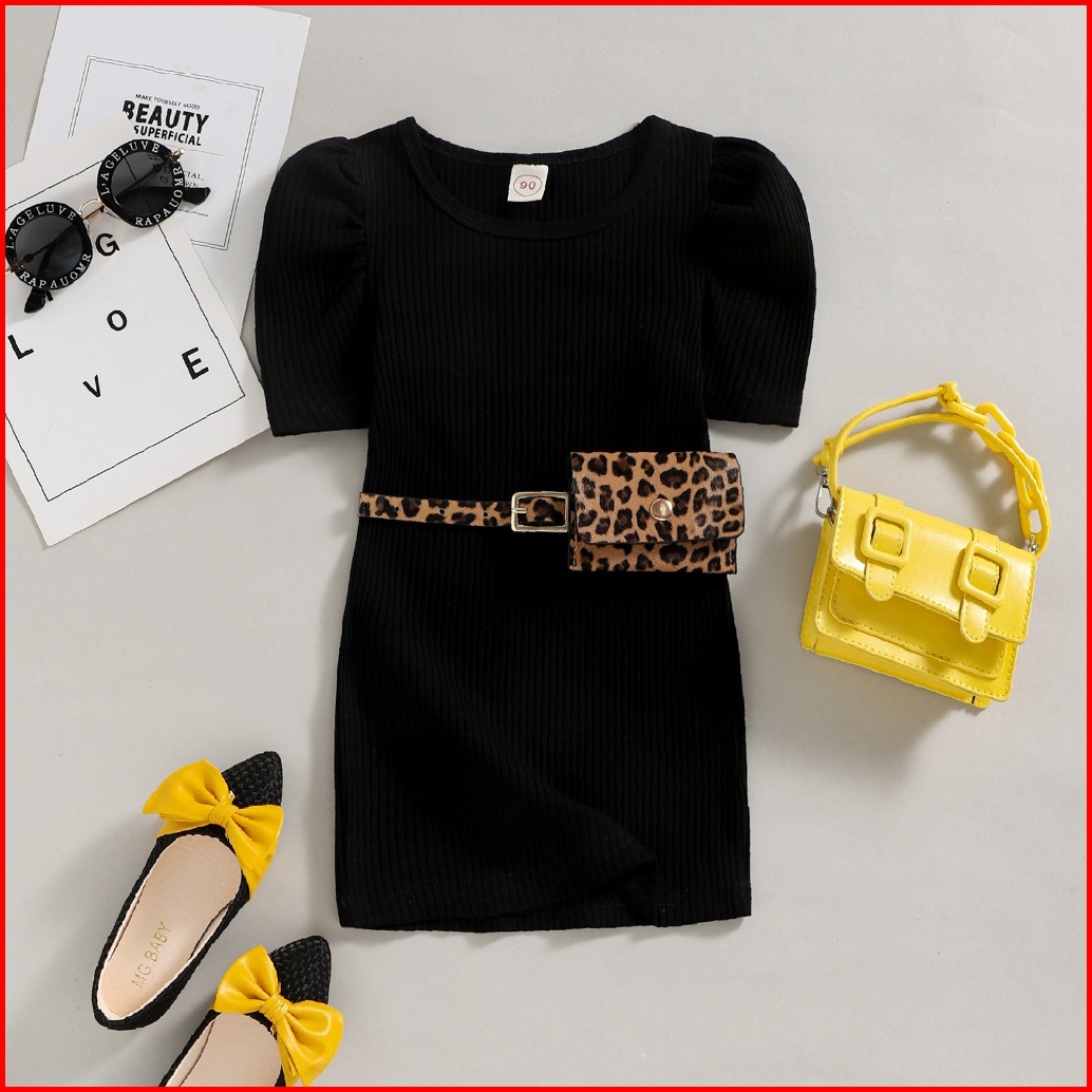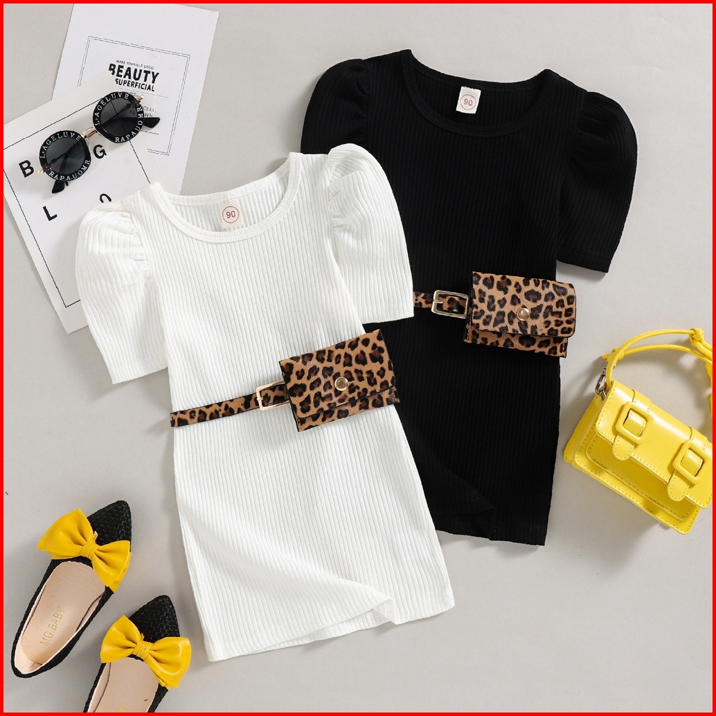 Kidsfo-71 Free Tas Dress Baju Kaos Anak Perempuan Imprt Simple Silhouette Black White
