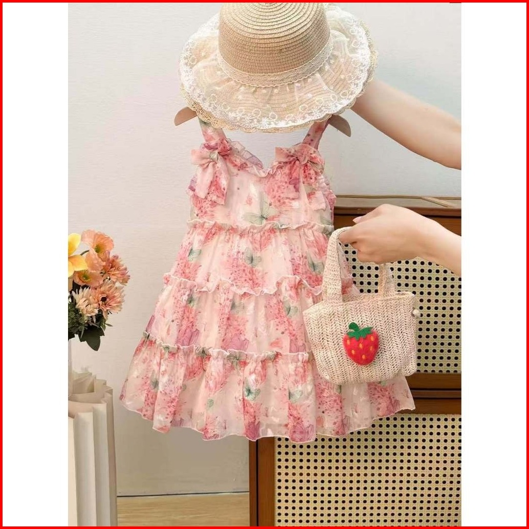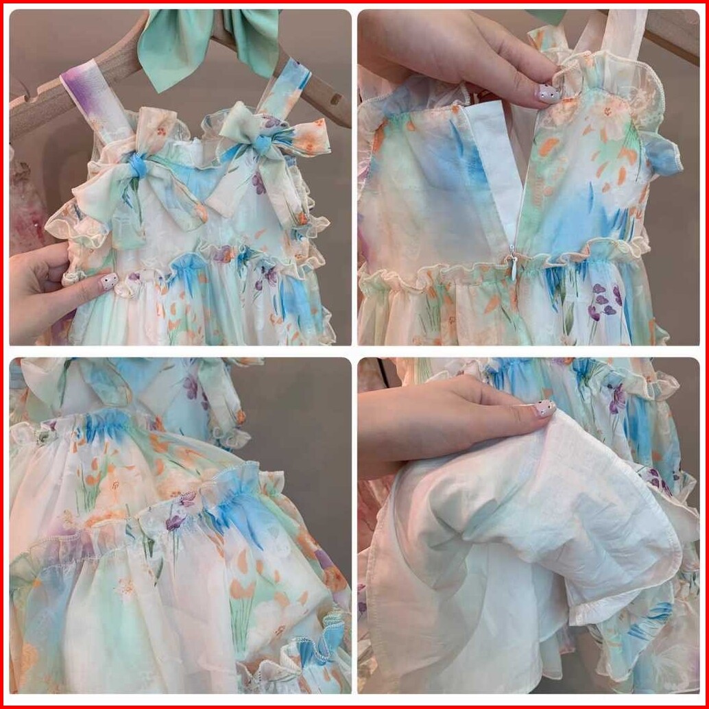 Kidsfo-4 Dress Anak Perempuan Gaun Kamisol Tanpa Lengan Bunga Gradiasi