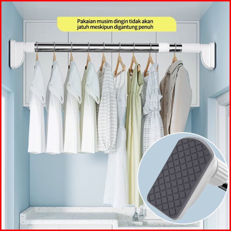 50-240cm Tiang Jemuran Baju Gantungan Stainless Steel Fleksibel Tiang Gorden Fleksibel Tiang Jemuran Portable Tiang